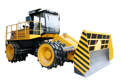 ● XG6281F(4YF28)垃圾壓實機是一種超重型、自行式垃圾壓實機。它具有靜線壓力大,爬坡能力強,壓實效果好,工作效率高等優(yōu)點,主要用于堆場垃圾的攤鋪及壓實作業(yè)??蓪⒚軐嵍葹?.3~ .4t/ m3的普通生活垃圾及商業(yè)垃圾壓實至 .75~ .95t/ m3(注:壓實3~4遍)。以壓實寬度為224 mm,行駛速度為3km/h,鋪層厚度5 m計算,至少處理垃圾4 m3/h,每天工作6小時,日處理垃圾大于6 t/d。